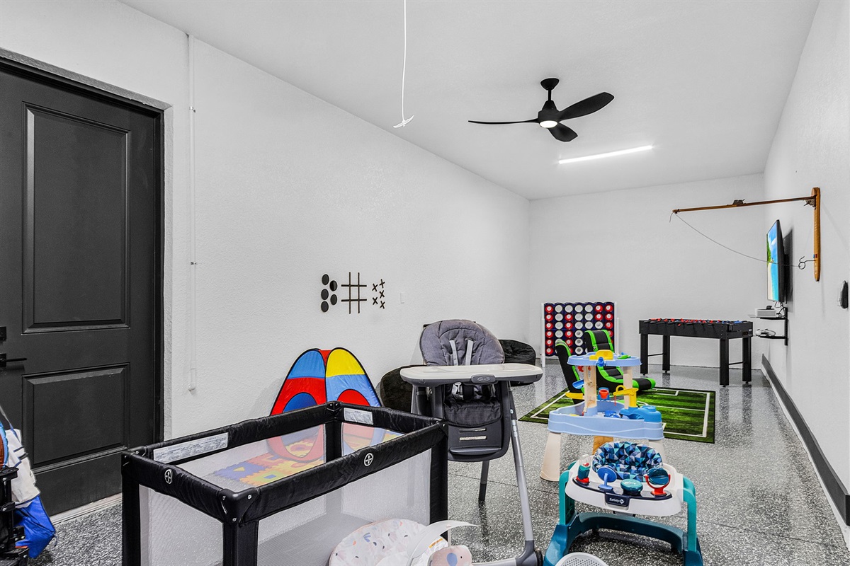 🎮 Game Room Fun: Our garage game room is packed with fun – Xbox, Foosball Table, giant Connect 4, board games, and more! 🕹️🏓