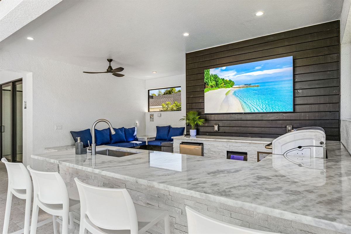 🏡 Private Outdoor Suite: A cozy lanai suite with its own bedroom and bathroom for ultimate privacy and comfort. You can only access this 4th bedroom through the lanai.