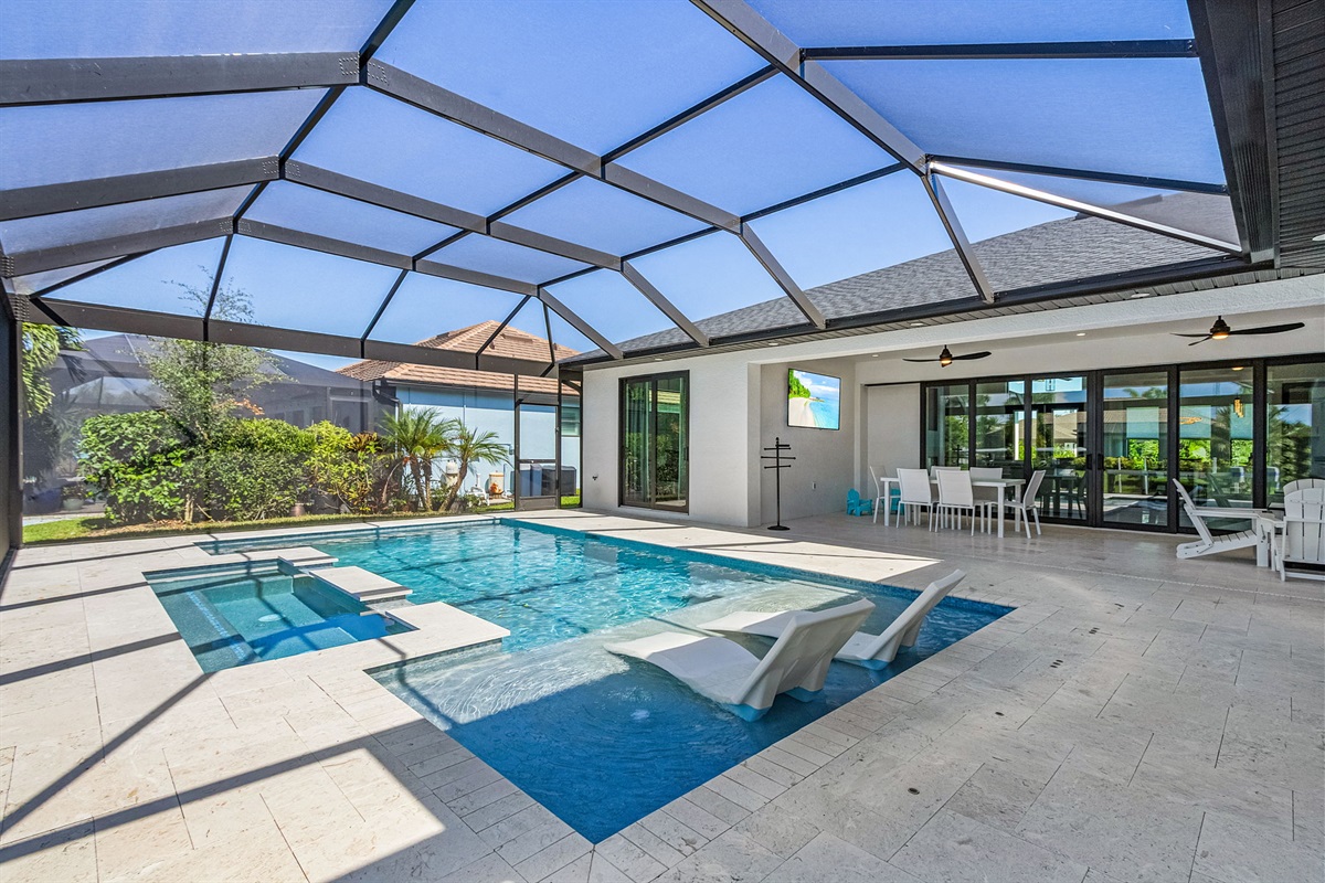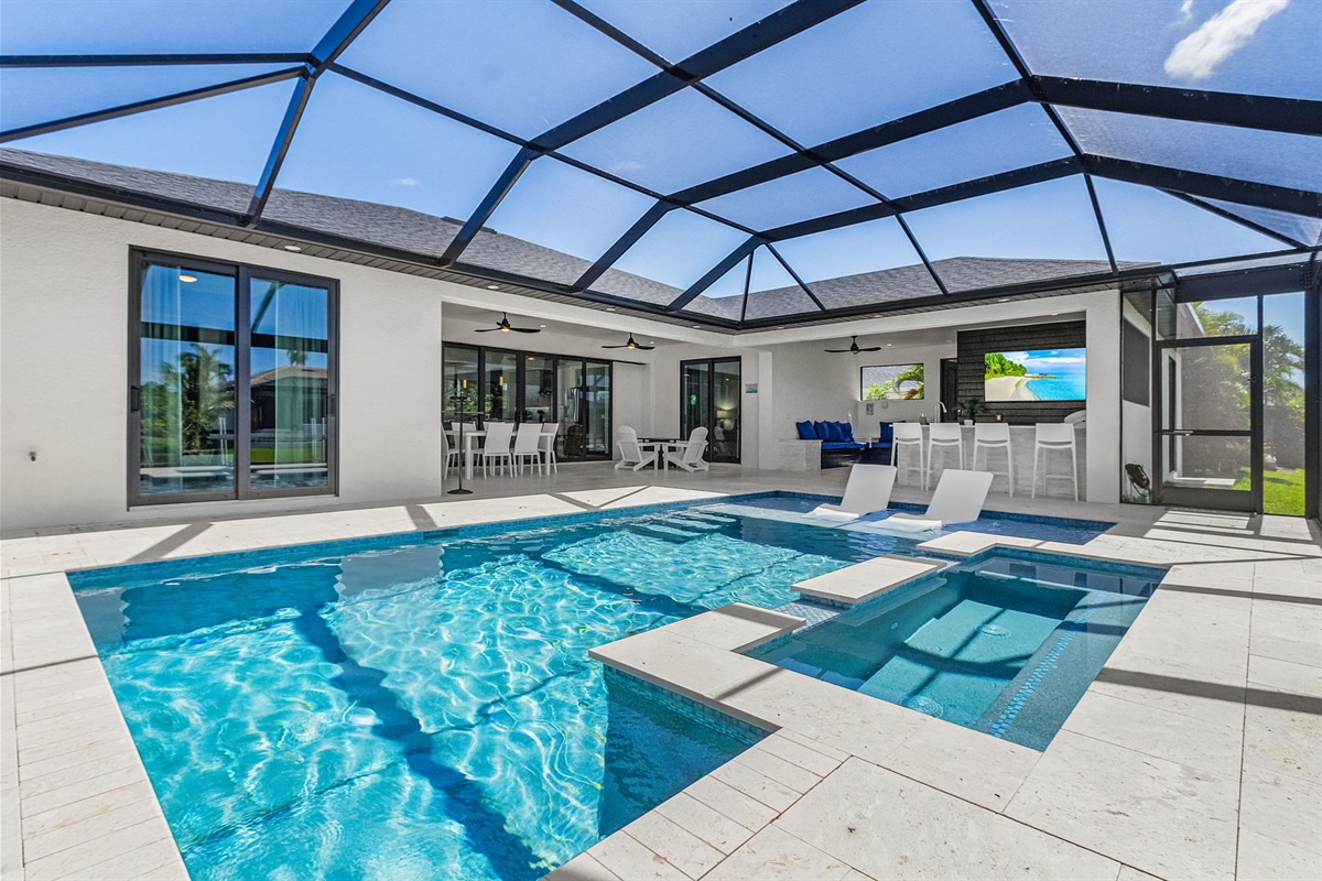 🌊 Heated Saltwater Pool & Hot Tub: Relax in the heated pool or soak in the hot tub, both set in a screened-in lanai for year-round enjoyment. 🛁💦