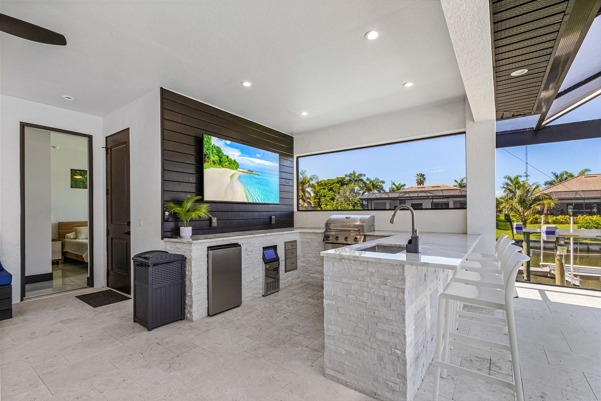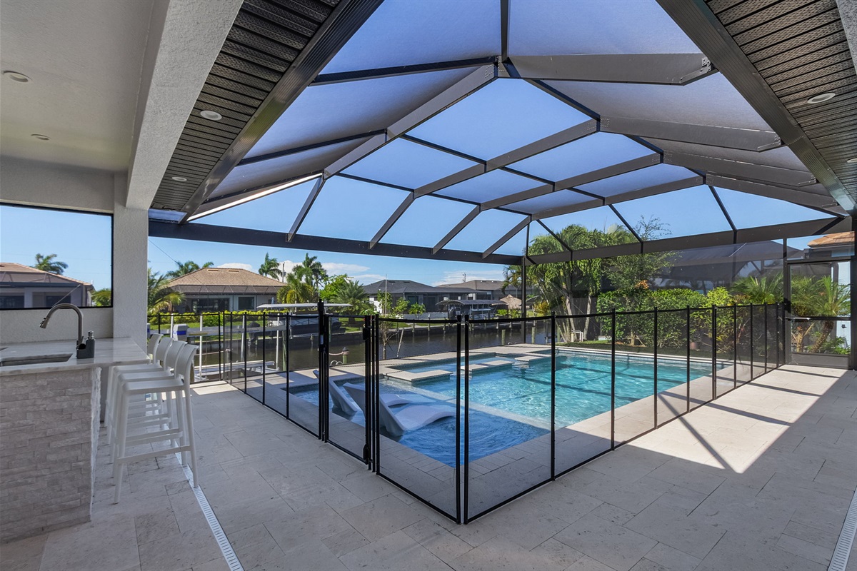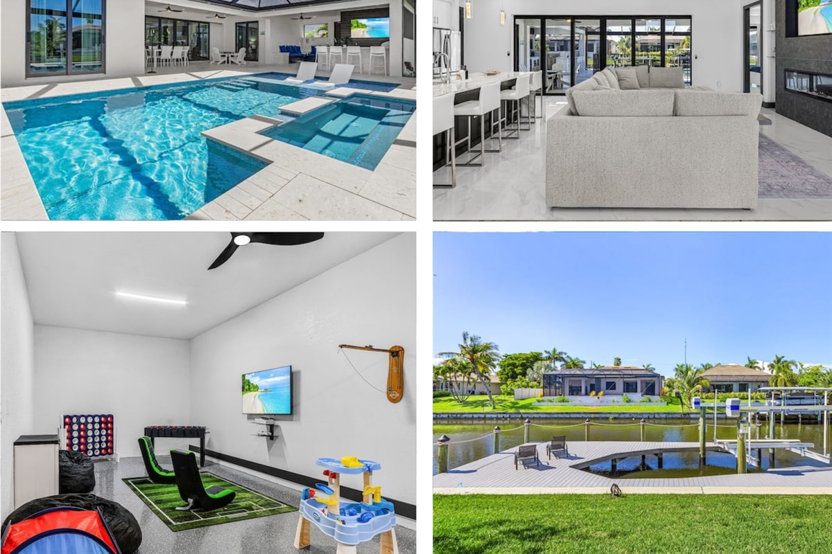 🌴✨ Escape to Cape Escape – your 4BR/3BA new construction waterfront villa in Cape Coral with direct Gulf access! Just 30 mins from Fort Myers Beach, Sanibel Island, and RSW Airport. Enjoy a private heated pool, hot tub, and unique lanai suite. 🍹 Fire up the grill, relax at the outdoor bar, or paddle in provided kayaks. Family-friendly with pack 'n plays, toys, pool gate, and more! Stay connected with high-speed WiFi and Smart TVs. Game room fun awaits – create unforgettable memories at the Cape Escape! 🏖️🌊☀️Property Details
